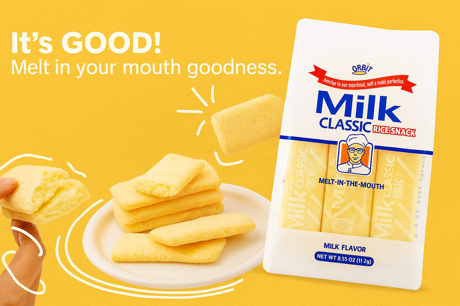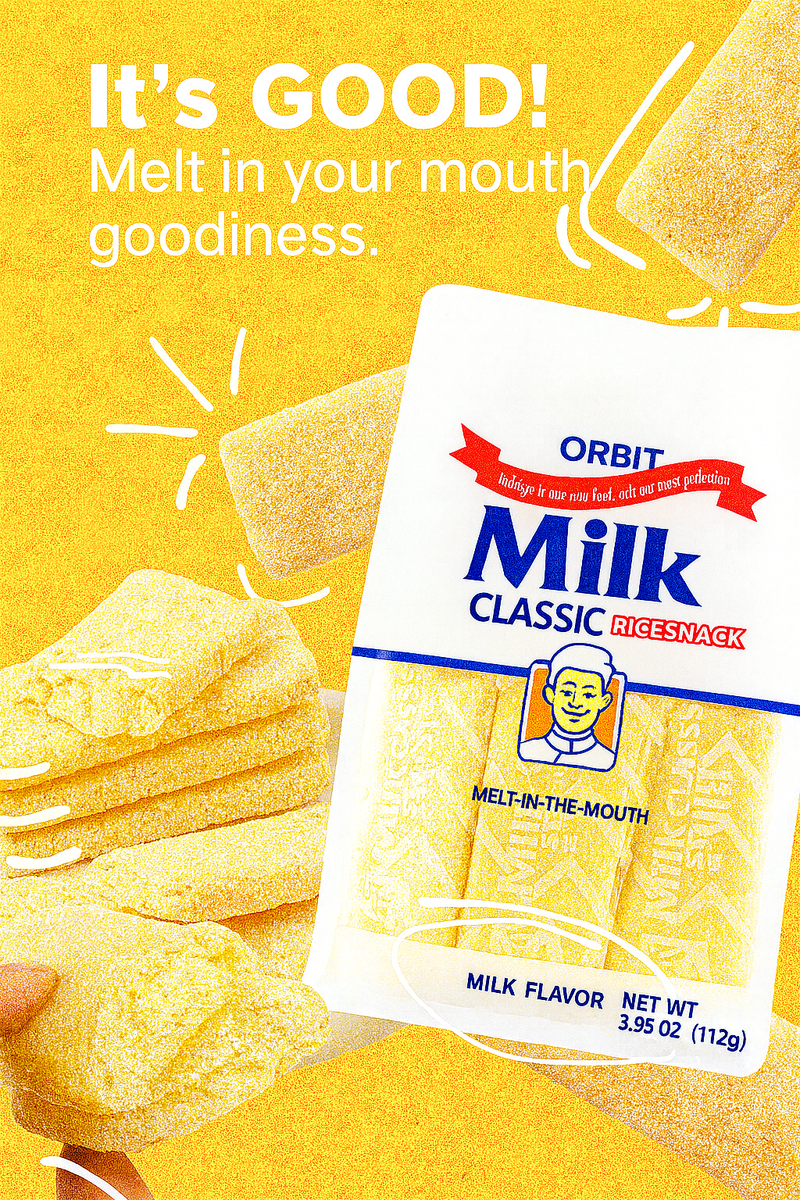 View full detailsOrbit Milk Classic Rice SnackEnjoy a crispy, creamy milk-flavored treat anytime! Perfectly crunchy and individually wrapped for on-the-go snacking....
