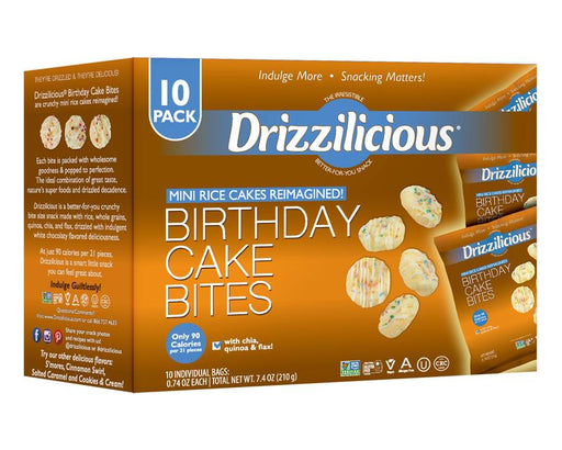 My Store10 in stockDrizzilicious Birthday Cake Bites 0.74oz (Pack of 10) Celebrate snack time! 🎉 These bite-sized popped rice cakes are drizzled with chocolaty sweetn...